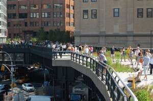 My recent visit to New York revealed a confident city that continues to understand the value of strategic investment in its public realm. I was very fortunate to have Lisa Switkin and Sarah Weidner of the landscape architecture firm Field Operations (master planners for Shelby Farms Park and the acclaimed High Line greenway in New York City) as my private tour guides. We began our tour on a cold, damp Monday afternoon with a walk along the High Line–an elevated abandoned rail bed that is being converted to an urban greenway. The first phase of the High Line (see photograph) opened to the public in June of 2009 and runs from the Financial District to Soho.