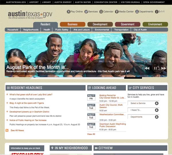 Two of our favorite city websites are Austin, Texas, which won the 2013 Best of the Web Award for cities, and Chattanooga, which captures the reinvented image of a city where extraordinarily high-speed Internet is available to every home and business in the city.